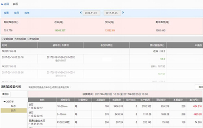 材料動(dòng)態(tài)收發(fā)存監(jiān)控,真實(shí)反映原材庫存情況,指導(dǎo)采購,核查材料,發(fā)現(xiàn)問題。促進(jìn)生產(chǎn),確保工程進(jìn)度。