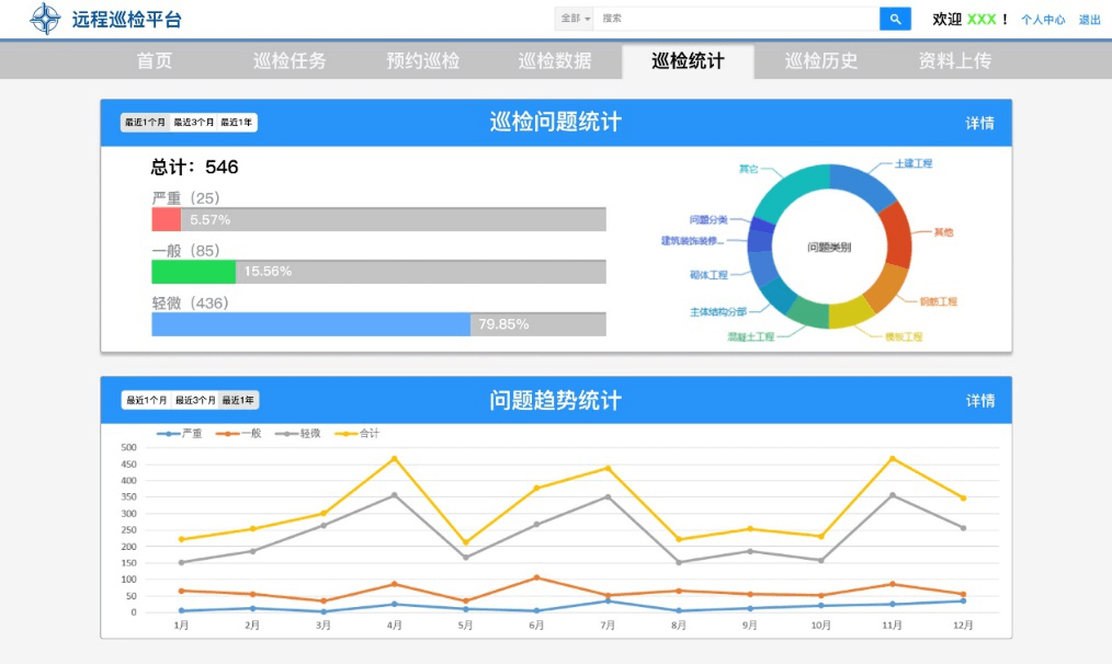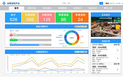 巡檢數(shù)據(jù):巡檢任務(wù)的統(tǒng)計(jì)、巡檢問題的統(tǒng)計(jì)、問題趨勢的統(tǒng)計(jì)。
