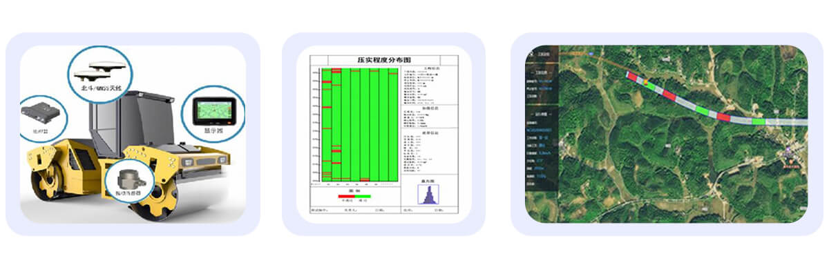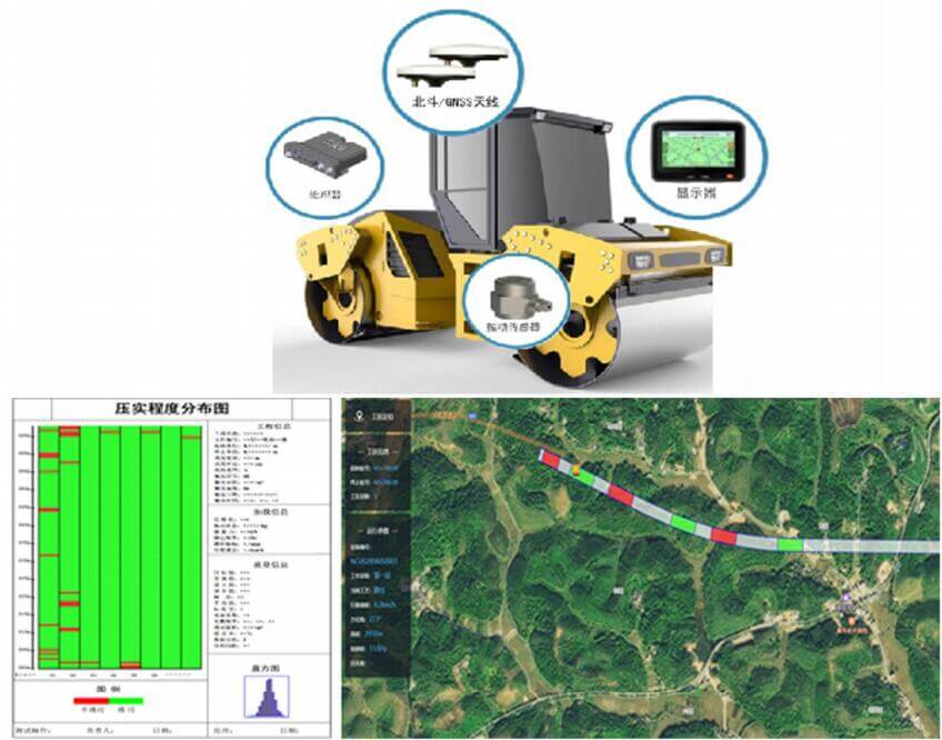 智能碾壓系統(tǒng)是利用北斗+GPS高精度差分定位技術(shù)、物聯(lián)網(wǎng)技術(shù)、實(shí)時(shí)通訊技術(shù)、大數(shù)據(jù)處理技術(shù)等,對(duì)壓路機(jī)的碾壓遍數(shù)、碾壓軌跡、碾壓速度、振頻振幅等數(shù)據(jù)實(shí)時(shí)采集,根據(jù)采集的數(shù)據(jù)結(jié)合試驗(yàn)檢測(cè)對(duì)施工質(zhì)量(壓實(shí)度)進(jìn)行分析判斷,及時(shí)掌握碾壓過程施工質(zhì)量狀態(tài)的技術(shù)。