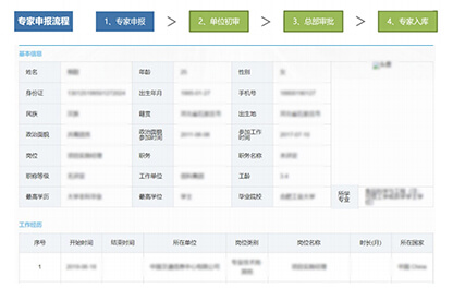 ①基本信息:專家等級(jí)、職稱級(jí)別、擅長專業(yè)領(lǐng)域、工作年限、是否熟悉海外業(yè)務(wù);